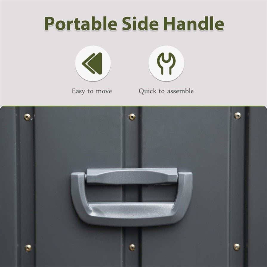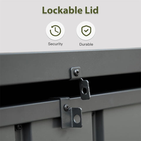 [WATERPROOF METAL]Our patio storage box has a slight slope design. The surface coating is made of durable construction with galvanized steel reinforcement, that can keep out mice and squirrels and prevent water accumulation, fading, rusting, and anti-UV.