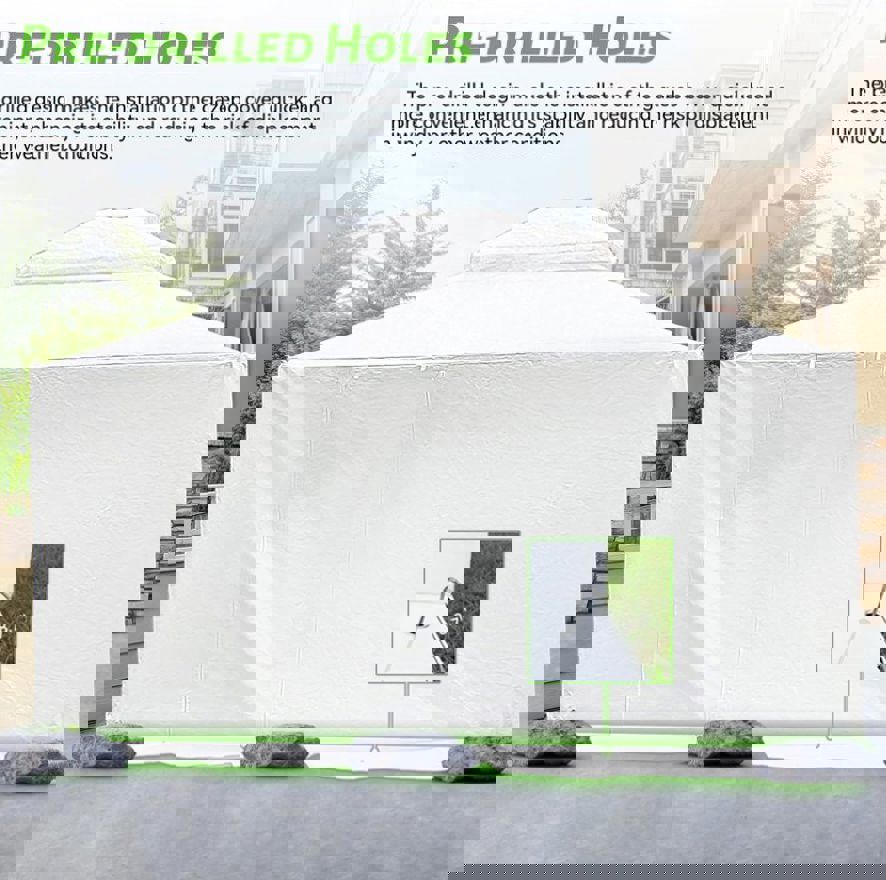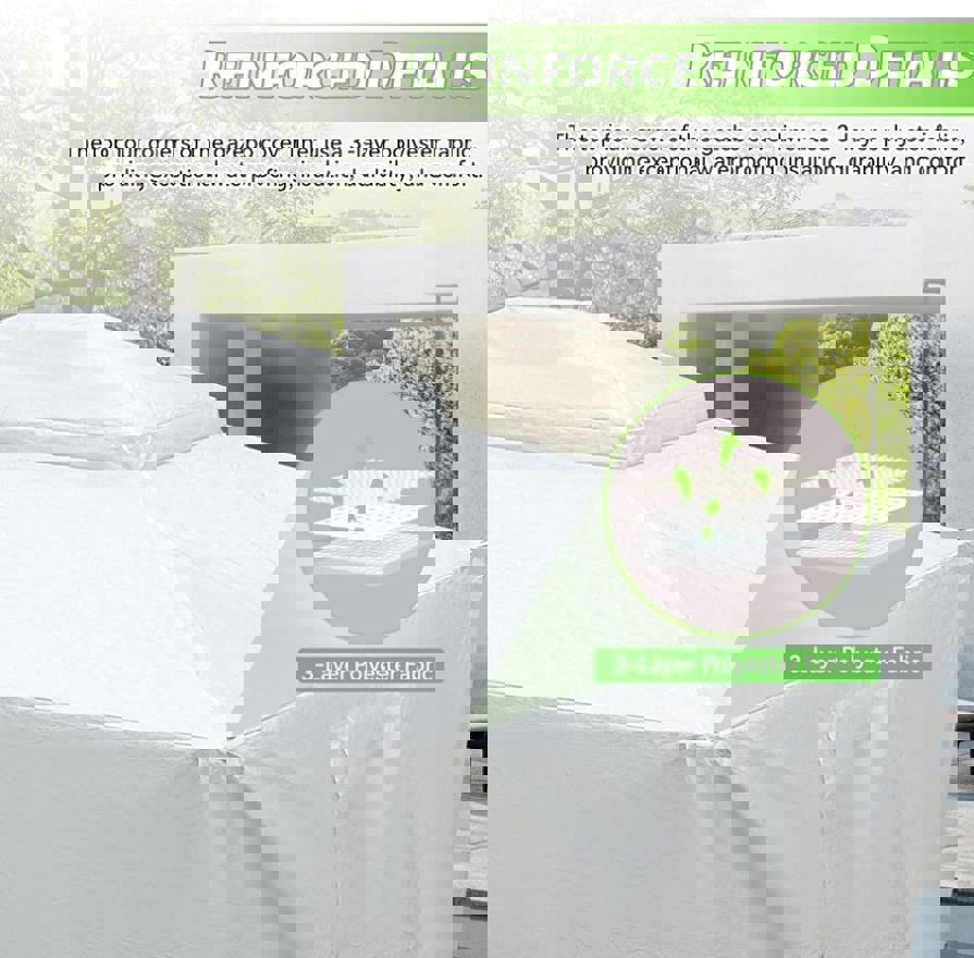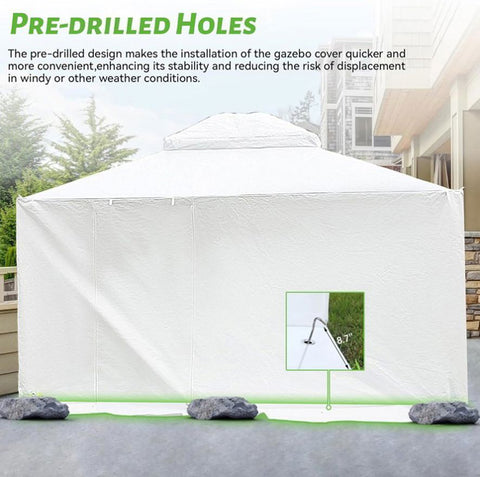 Enhanced Windproof Design: With an extended 8.7-inch length on all sides and pre-drilled holes, this cover can be securely anchored to withstand even the strongest winter winds. These features ensure that your gazebo remains stable and protected, no matter the weather.