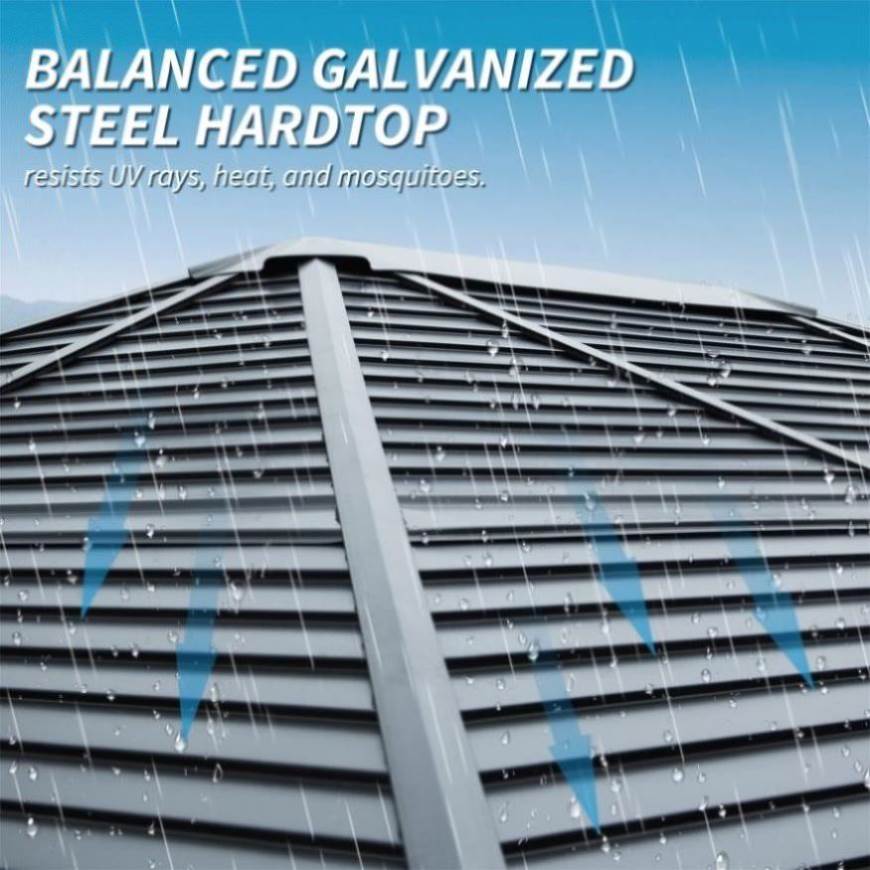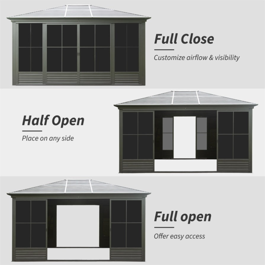 Sturdy Aluminum Frame: Domi hardtop gazebo aluminum frame combines aesthetic appeal with exceptional durability. The powder coating enhances its longevity and rust resistance, ensuring that your solarium withstands the elements for long-term outdoor enjoyment.