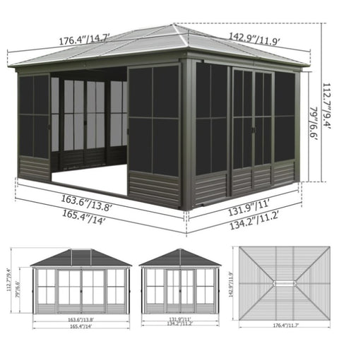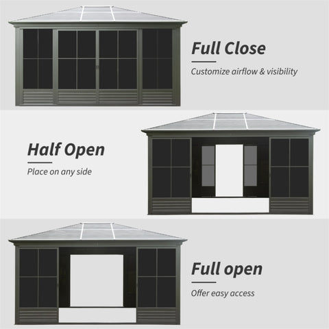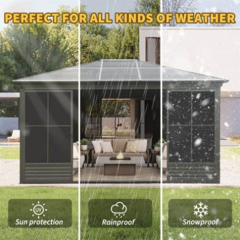 12x14FT Outdoor Sunroom, Galvanized Steel Hardtop Enclose Gazebo Sloping Roof, All Weather Aluminum W1859P300399
