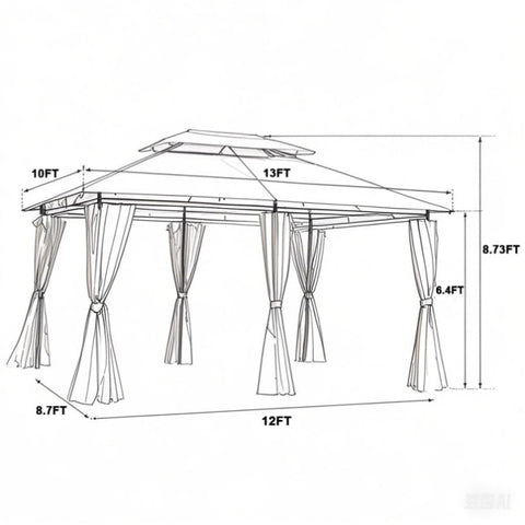 Overall Size: 13 Ft W x 10 Ft D x 9 Ft H (400 x 300 x 276 cm)