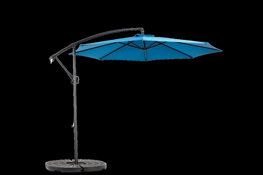 This market umbrella has a crank mechanism, you can easily open and close the umbrella in a few seconds by rotating the crank handle. No base are included and lightweight.