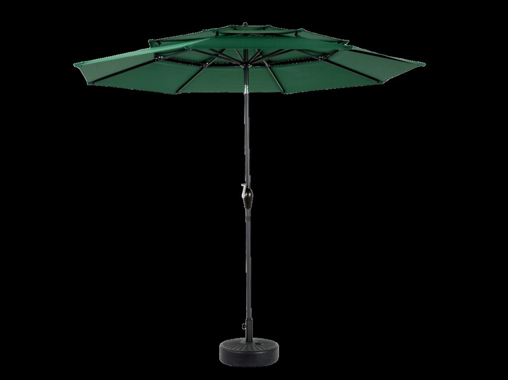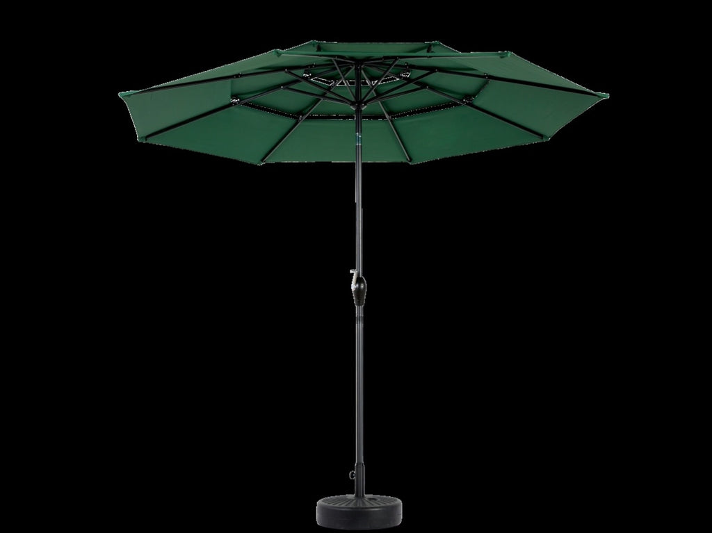 This market umbrella has a crank mechanism, you can easily open and close the umbrella in a few seconds by rotating the crank handle. No base are included and lightweight.