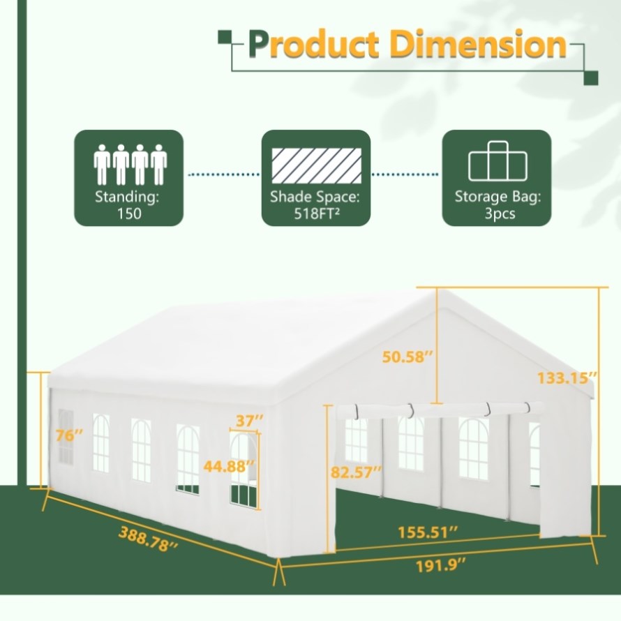 - This party tent comes with 3 storage bags for easy storage and transportation. According to the instruction manual, you can easily assemble and disassemble it to create an ideal environment for your event anytime, anywhere.