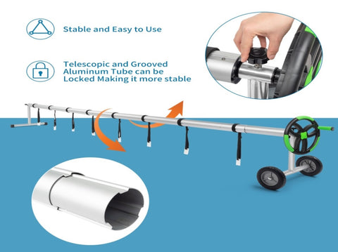 A cover film is essential for swimming pool. You may feel it's a bit difficult to roll up the swimming pool cover in seconds. So what we are going to recommend to you is this 18FT Aluminum Inground Solar Cover Swimming Pool Cover Reel. It adopts high quality material with exquisite workmanship, which ensures good hardness and high strength. Featuring 3-section aluminum design pipe design, it would not droop even if it was used for a long time. Moreover, with solid wheel design, it's stable and sturdy. So what are you waiting for? Don't hesitate, just take it home!