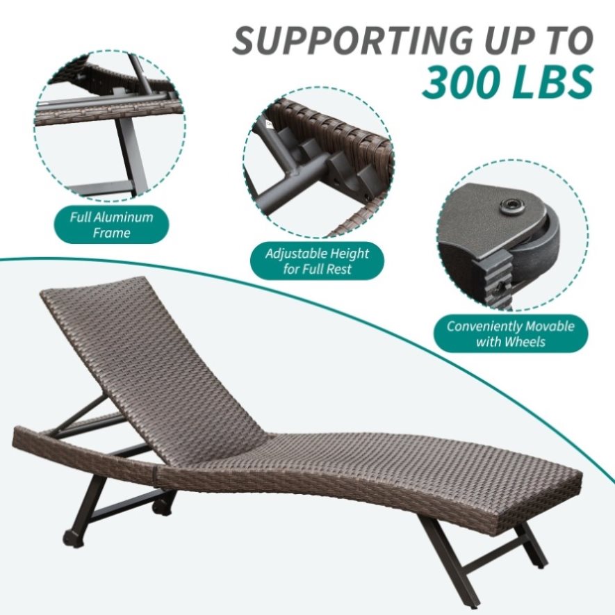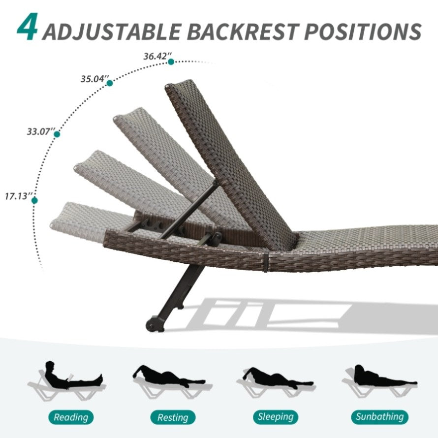 Adjustable Recline Positions – Features 4 reclining angles, allowing you to find the perfect position for sunbathing, lounging, or napping.