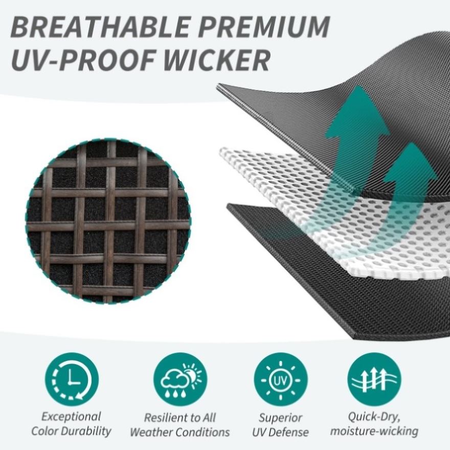 All-Weather Materials – Weather-resistant rattan and quick-drying foam cushions ensure durability and comfort in various outdoor conditions.