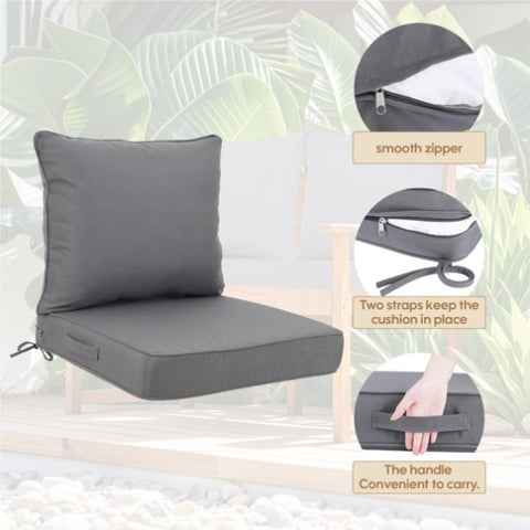 24x24 Inch Outdoor Deep Seat Cushion Set - Waterproof Fade-Resistant Patio Furniture Cushions with W419P290479
