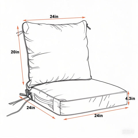 Deep Seat Comfort Upgrade● 24x24 inch oversized design with 4.3-inch thick cushions provides ergonomic support for patio chairs, sofas, or porch swings. Say goodbye to sagging seats! o sagging seats! Both the seat cushion and backrest cushion feature two reinforced straps to ensure a secure and stable fit on chairs, preventing slipping or shifting during use.