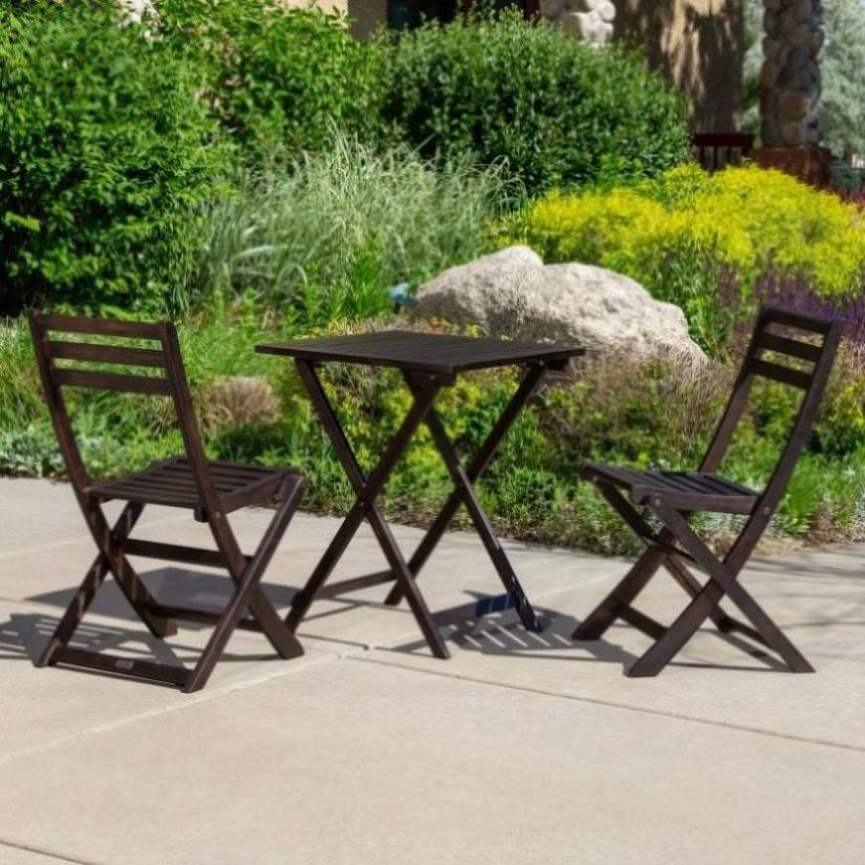 Perfect for an apartment or townhouse. This simple yet elegant 3-piece bistro set is a great place to relax. The Twin Lakes eucalyptus table and two chairs fold for easy portability and storage. Excellent for a small patio, balcony or in the garden as a spot to enjoy a cup of tea or just relax and smell the roses.