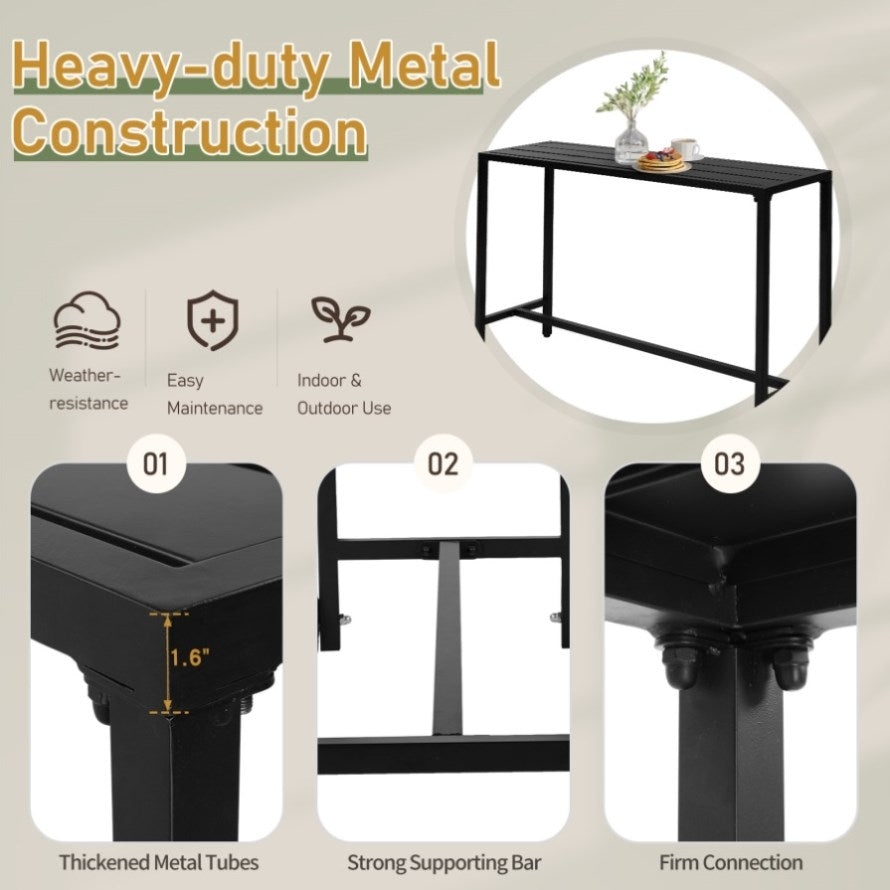 2. Durable & Sturdy Construction: Built from thickened metal tubes with a rustproof powder-coated finish, the bar table and stools are designed to withstand outdoor elements. The reinforced crossbar and secure connections ensure a high weight capacity—table supports up to 380 lbs, and each bar stool holds up to 330 lbs.