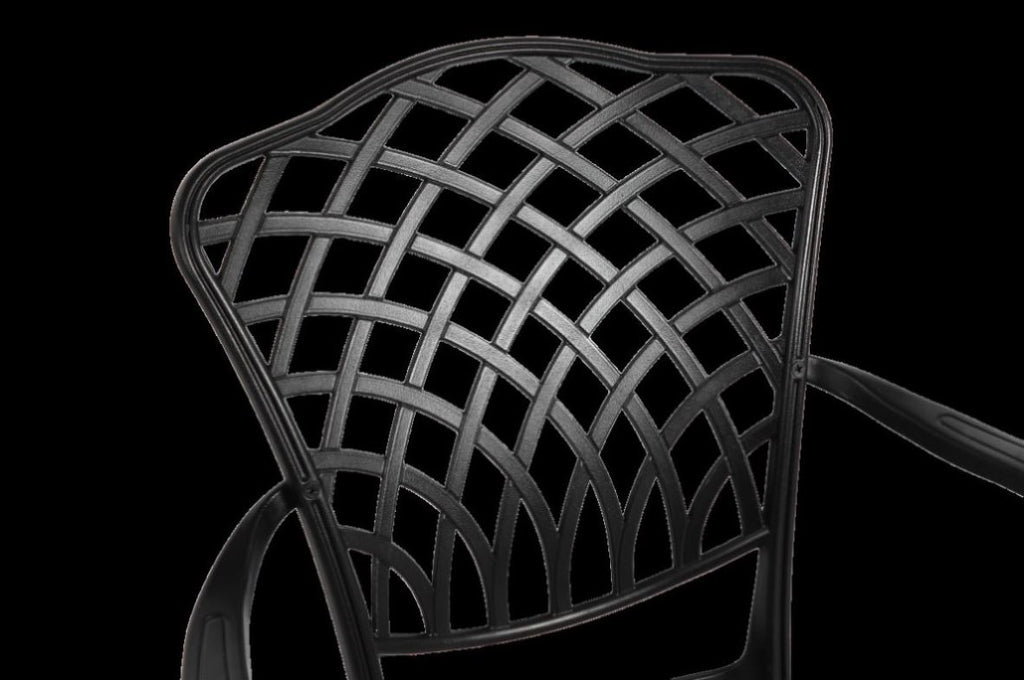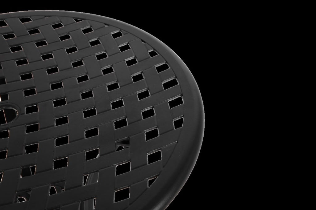 Outdoor cast iron bistro set is made of cast aluminum, with cast aluminum frame, environmental protection coating, weather resistance, rust prevention, oxidation prevention, convenient maintenance, firmness and durability.