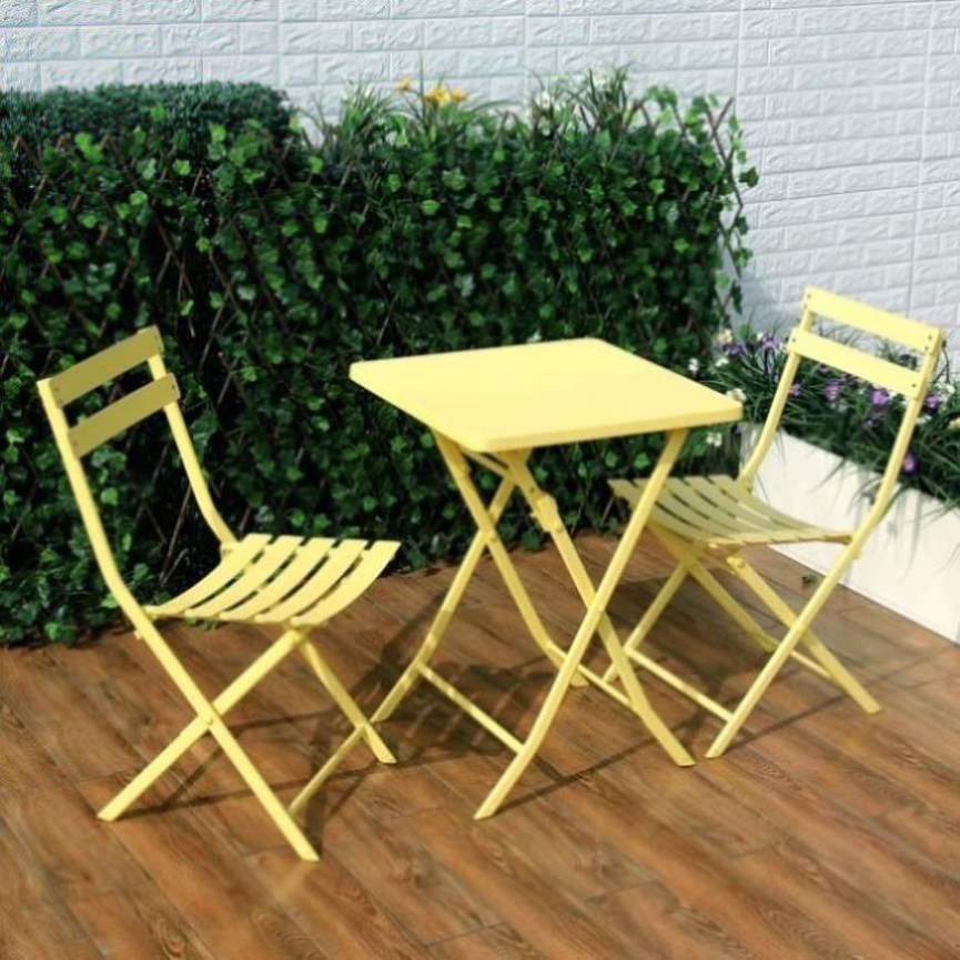 3 Piece Patio Bistro Set of Foldable Square Table and Chairs, Yellow W1586P143173