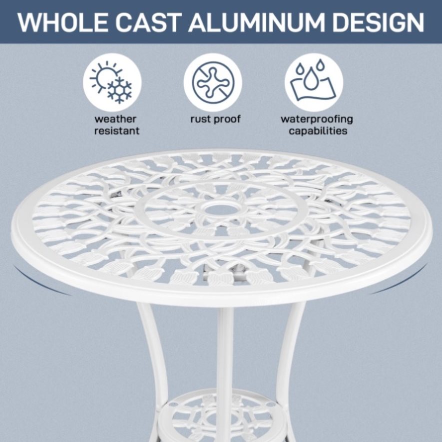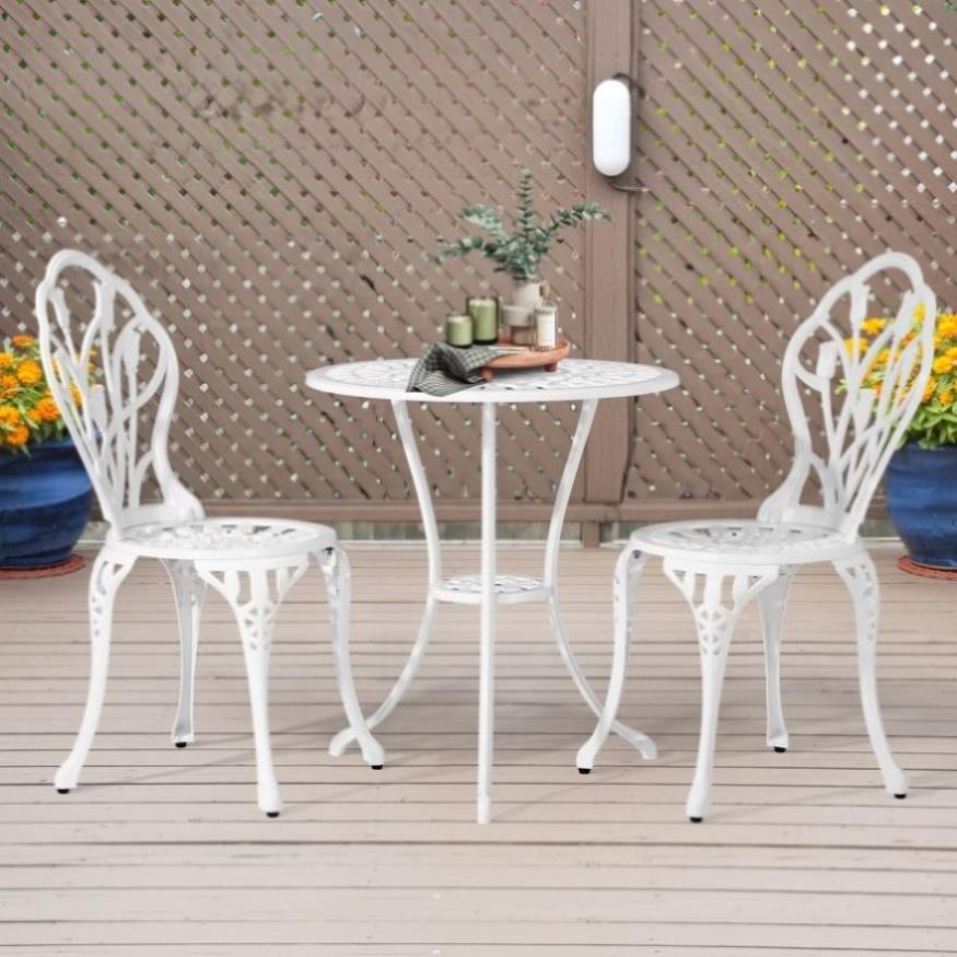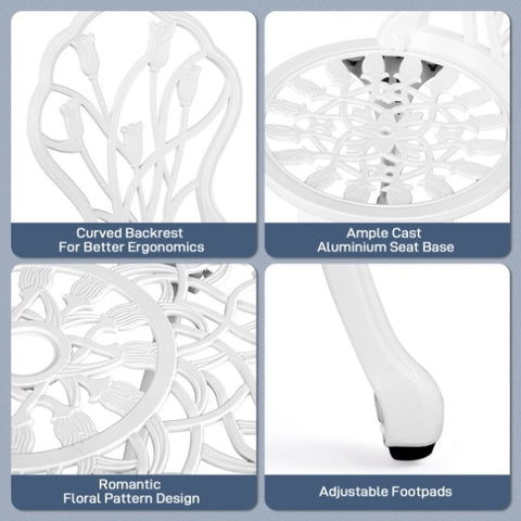 3 Pieces Patio Bistro Set, Rust-Resistant Cast Aluminum Outdoor Bistro Table and Chairs Set of 2, 03627350