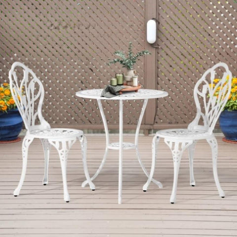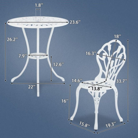 Weather-Resistant: Crafted with premium cast aluminum and reinforced stainless steel screws, this bistro set resists rust, corrosion, and weather damage. Its zero-maintenance design allows effortless cleaning with dry/wet cloths, ideal for year-round outdoor use.