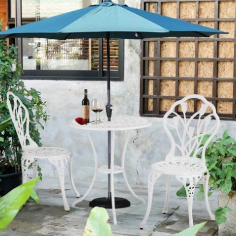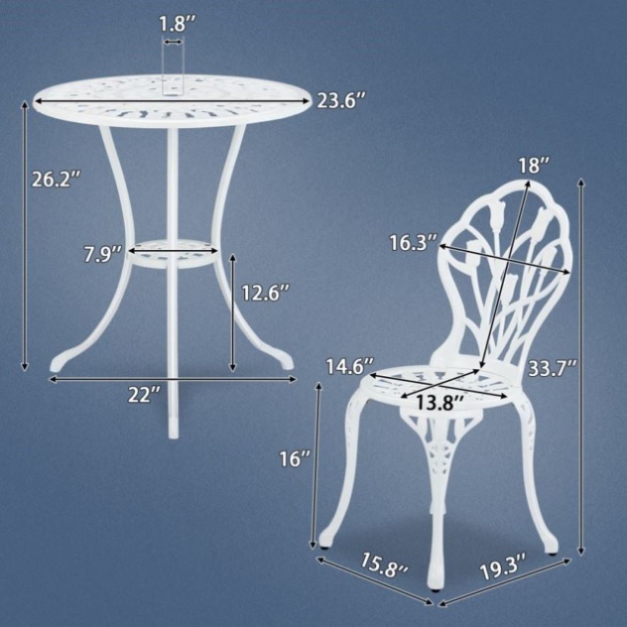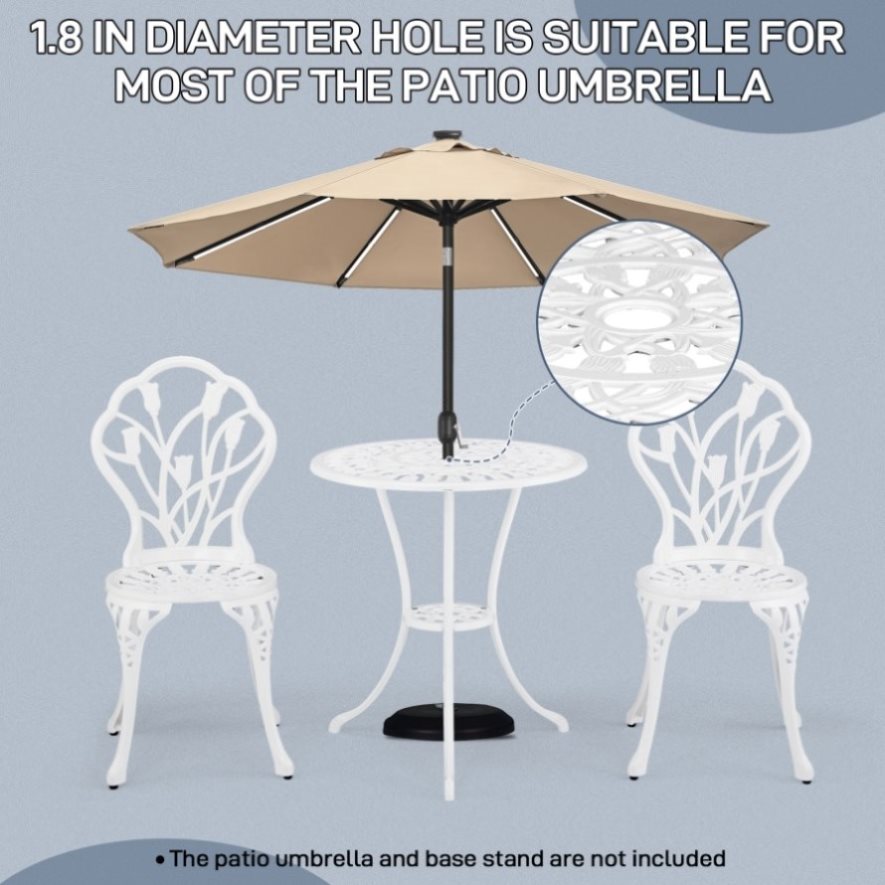 Patio Table with Umbrella Hole: Center 1.8in umbrella hole in the table transforms your outdoor space into a sun-safe retreat, the bistro patio set is perfect for poolside cocktails, garden brunches, or balcony tea parties. Compatible with standard market umbrellas.