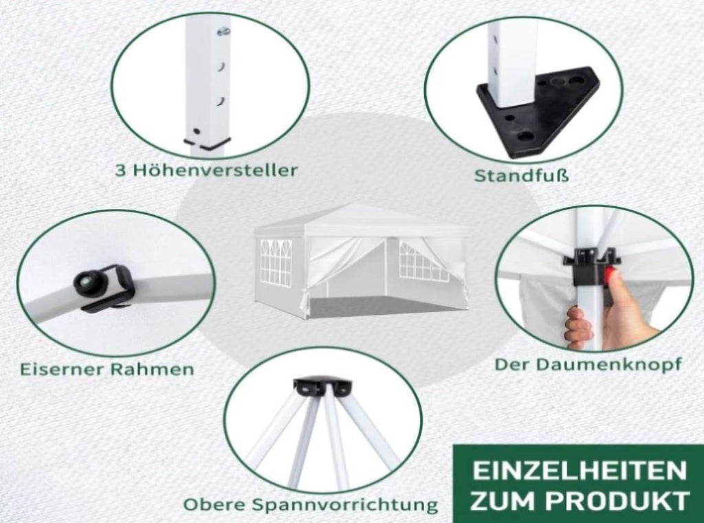 1. Material: White Powder Coated Steel Frame & WaterProof 210D Oxford Fabric Cover