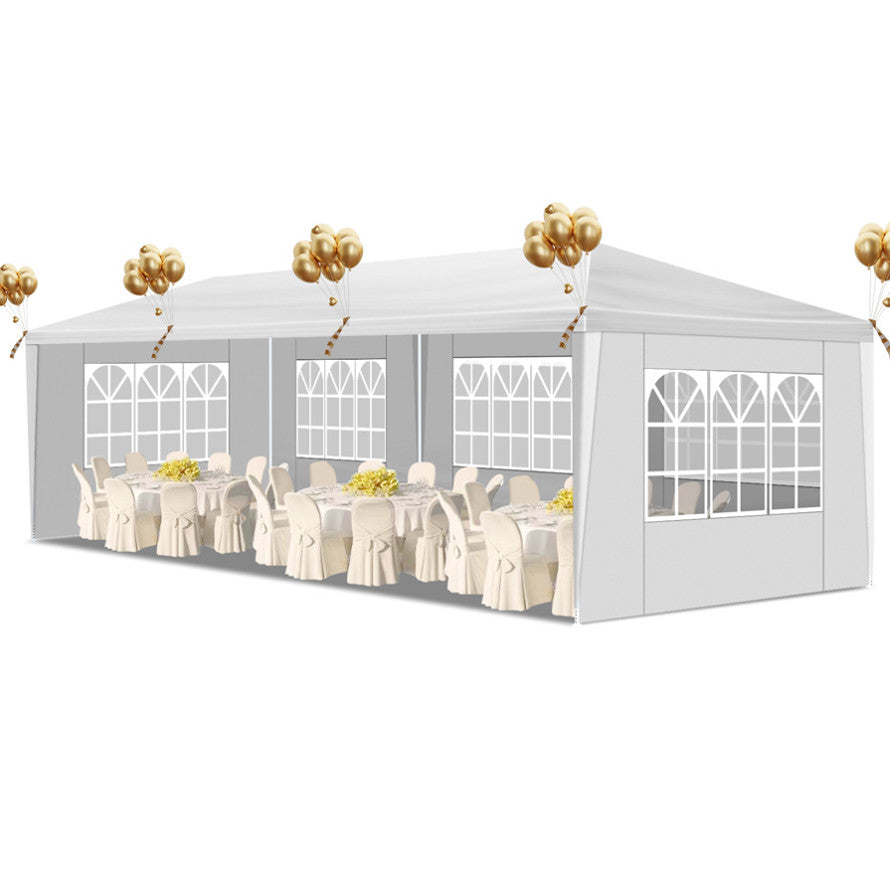 Complete your party with this spacious and versatile Outdoor Party Tent! It is definitely a must-have for a party in your backyard or for a commercial event outdoors. Our outdoor party tent offers shelter from the sun rays and light rain, so as to provide the perfect space for serving food and drink. And the tent is a wonderful choice to add party atmosphere that will put all of your guests in the mood to celebrate.