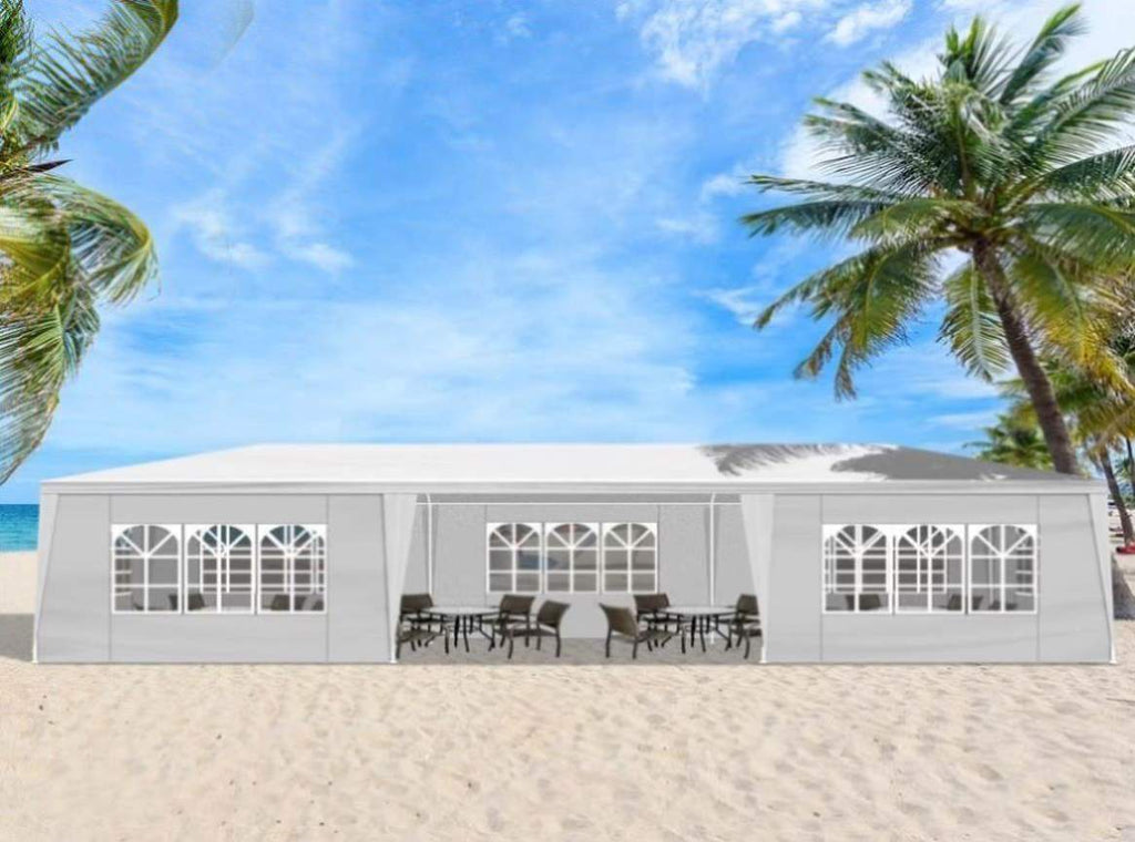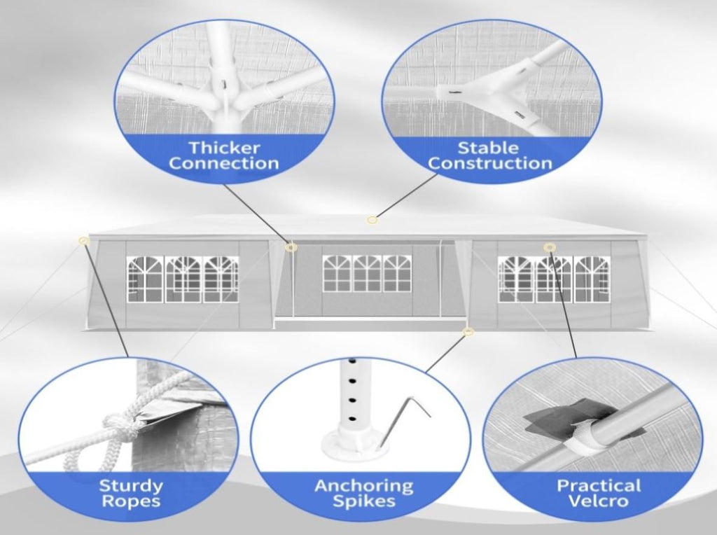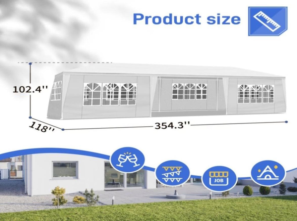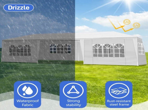 Complete your party with this spacious and versatile Outdoor Party Tent! It is definitely a must-have for a party in your backyard or for a commercial event outdoors. Our outdoor party tent offers shelter from the sun rays and light rain, so as to provide the perfect space for serving food and drink. And the tent is a wonderful choice to add party atmosphere that will put all of your guests in the mood to celebrate.