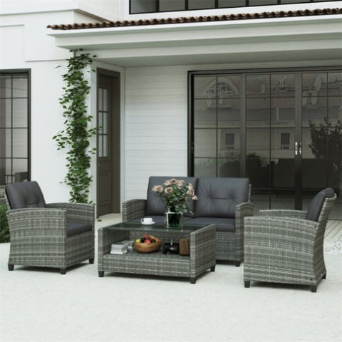 4 Piece Outdoor Rattan Sofa Set-Gray 87087047
