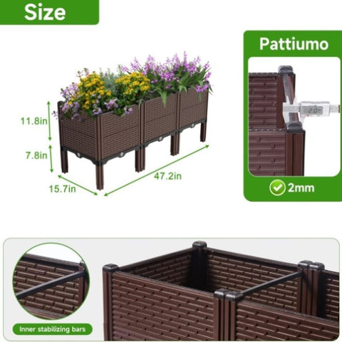 Spacious Design: Our 47.2x15.7x19.6in Raised Garden Beds Outdoor provide ample space for cultivating a variety of plants, making them perfect Polypropylene Planter Boxes Outdoor for growing Vegetables, Flowers, and Herbs.