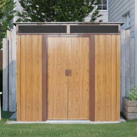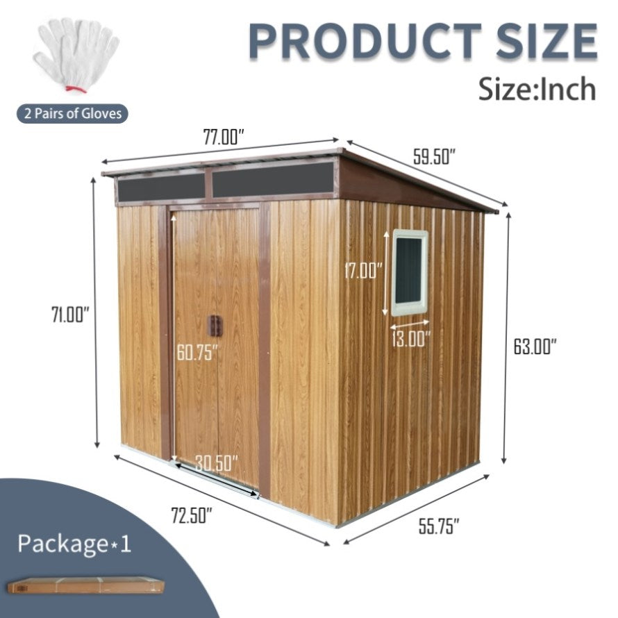 Sturdy Outdoor Storage RoomThe outdoor tool shed is made with galvanized steel for strong CORROSION-RESISTANCE, UV-RESISTANT and MOISTURE-PROOF. It is suitable for all weather conditions and can be used all year round.