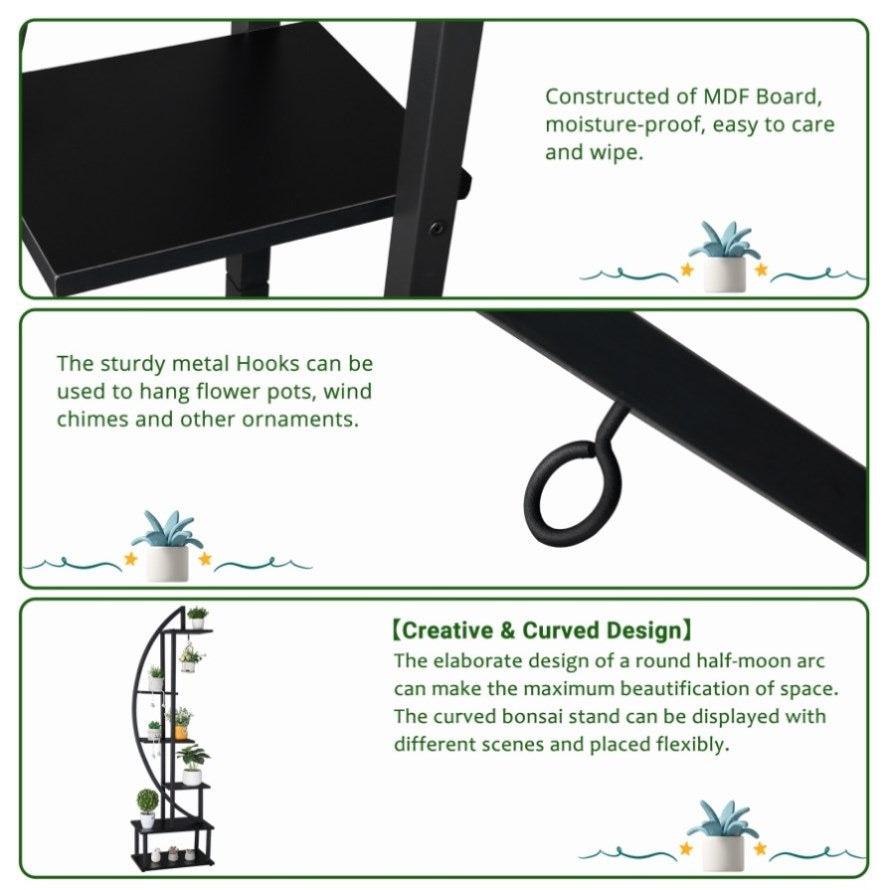 4. Multi-purpose use: you can also use the plant rack to store collectibles, knickknacks, photo frames, books, handicrafts, etc.