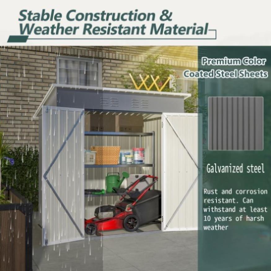 - [Multifunctional use] 6'x4' outdoor Metal storage cabinet can be used not only as a tool shed, but also as a pet house, providing a safer and warmer room for your pet; it can also be used as a storage room for storing boxes, and can also be used as a garbage collection room to keep the backyard tidy. Which is a great shed house for backyard!