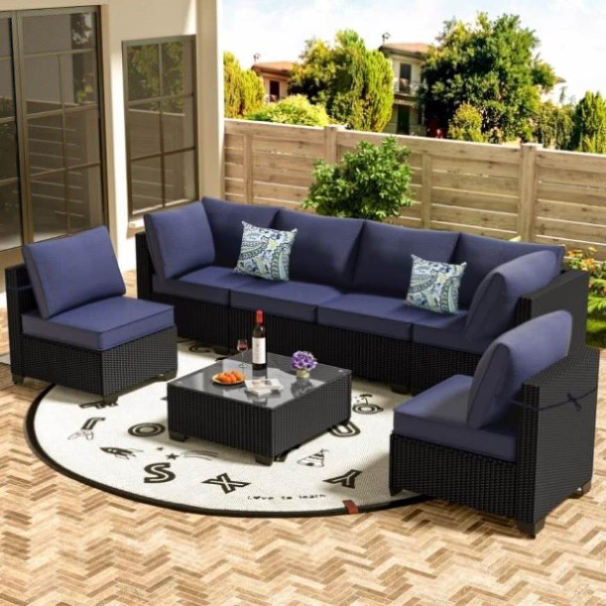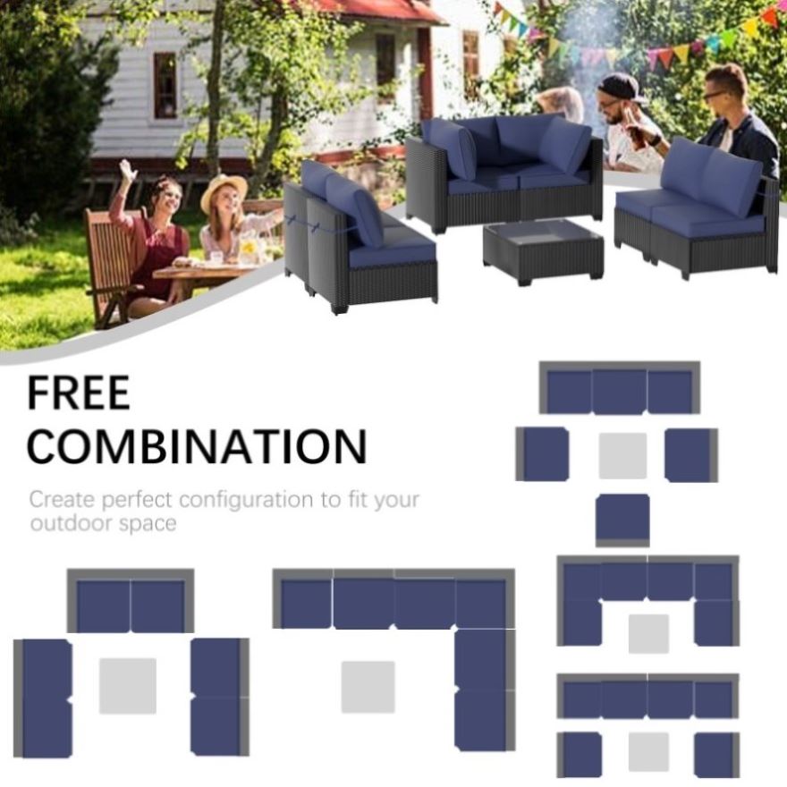 【Modular Patio Furniture Set】This versatile set includes1 coffee table with glass top, 2 left and right chairs, 4 corner sofas,providing ample seating for six. Perfect for hosting family and friends, this set can be rearranged to fit your garden, lawn, backyard, poolside, porch, deck, balcony, or yard, creating the ultimate party and leisure experience