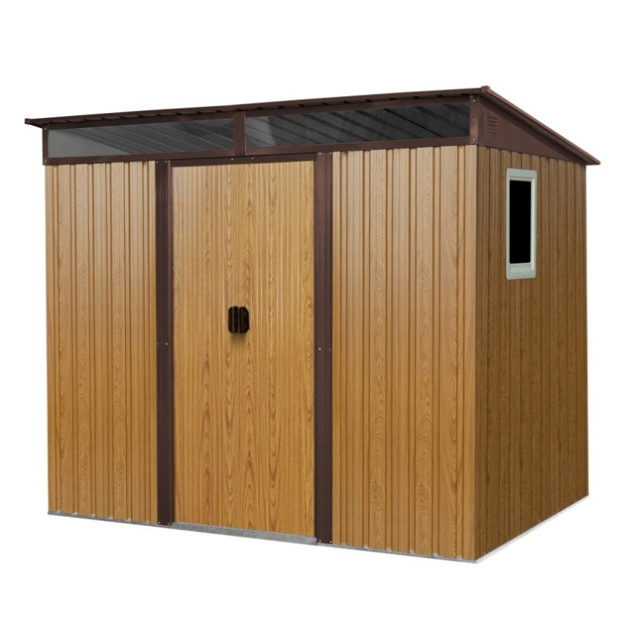 Sturdy Outdoor Storage RoomThe outdoor tool shed is made with galvanized steel for strong CORROSION-RESISTANCE, UV-RESISTANT and MOISTURE-PROOF. It is suitable for all weather conditions and can be used all year round.