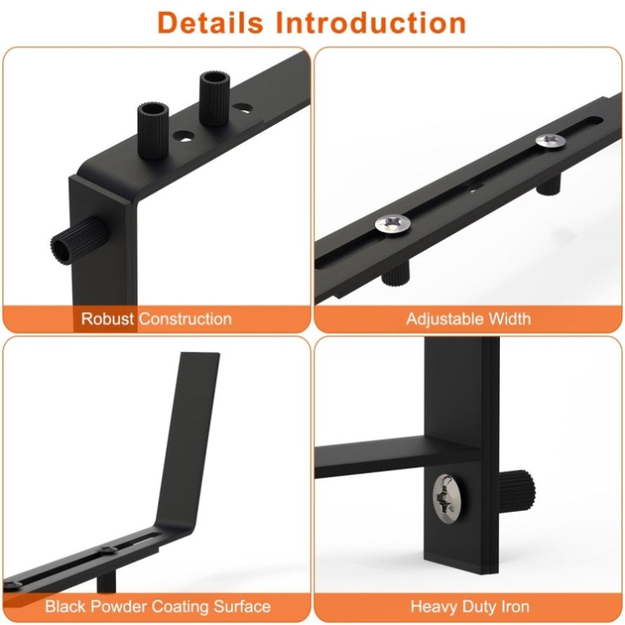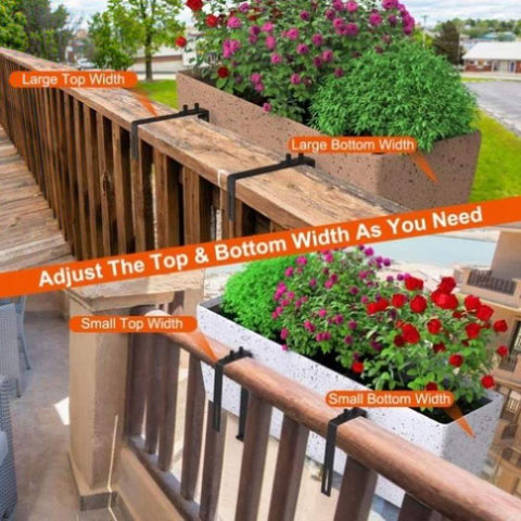 Adjustable Planter Bracket: The hanging part of the planter box bracket can be adjusted between 2.36-3.74in or 5.1-6.9in(two different assembly ways), and the planter placement part can be extended from 6.1in to 11.6in, which can suit for most size of planters.