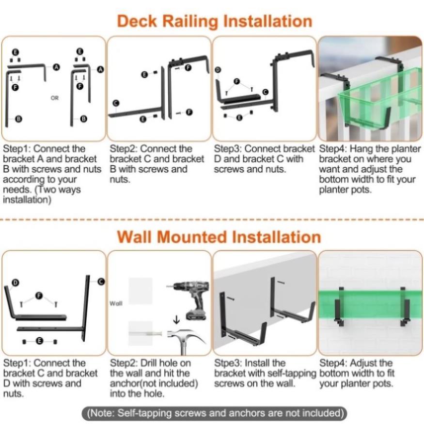 Easy To Install: Comes with 4 sets of iron brackets accessories and total 24Pcs screws & nuts and one screwdriver, you can assemble the Flower Box Bracket easily and quickly. No other tools needed.