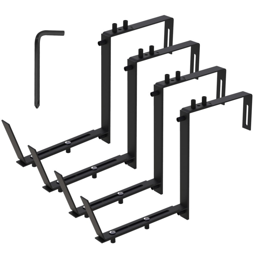 Do you want to decorate your windows, porch, or balcony with beautiful flower pots? Our 4Pcs planter pot brackets are good choice for you! Advanced sturdy iron material with black powder coating makes the bracket durable and able to withstand harsh weather, ensuring long time use. The top hang part and the bottom placement part can be adjusted to fit windows with different thickness and suit for various flower pots. Perfect for indoor and outdoor to add elegance and charm to your home.