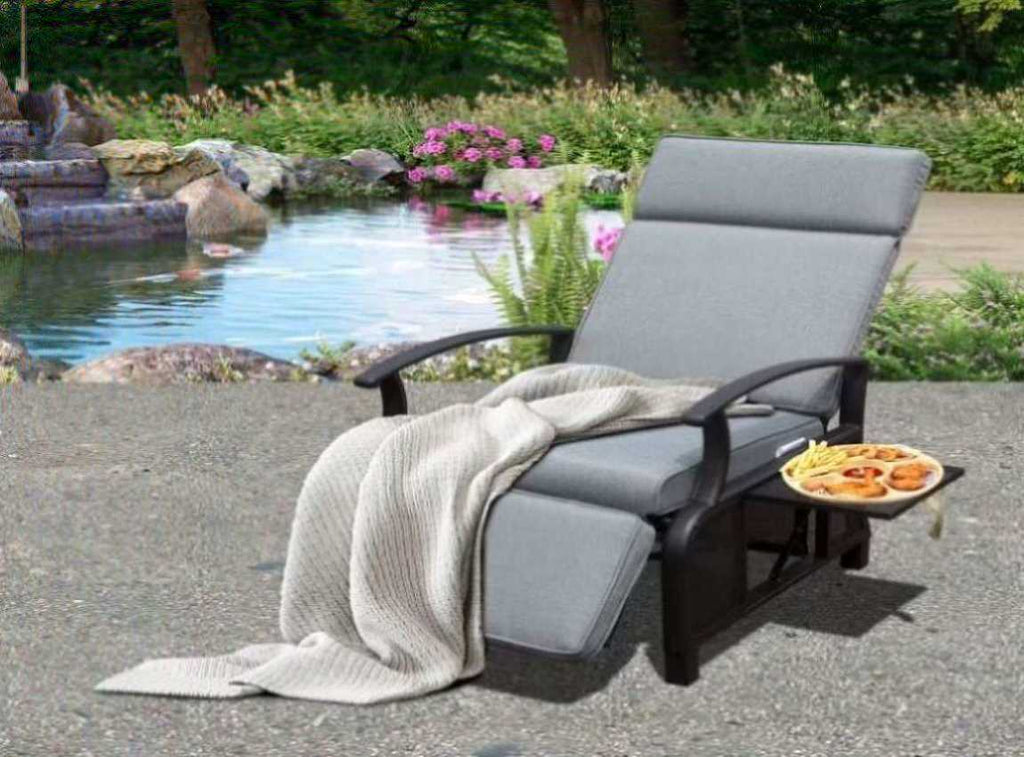 Adjustable Patio Recliner Chair Metal Outdoor Lounge Chair with Flip Table Push Back, Adjustable W1859P196387