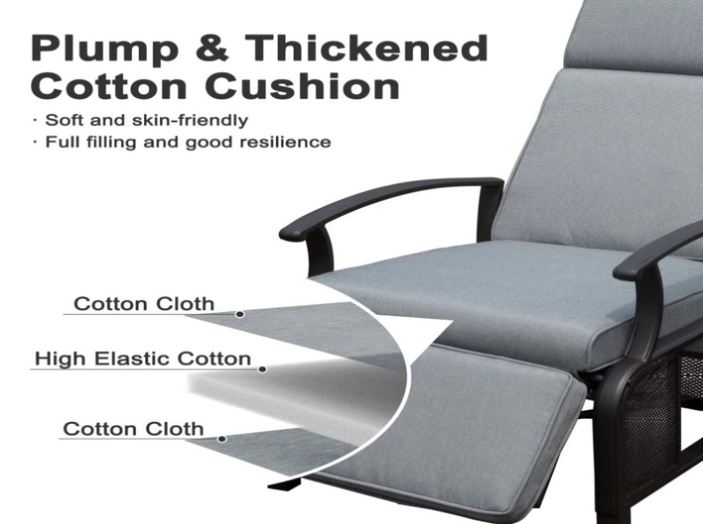 Robust Construction: Indulge in the luxury of outdoor relaxation with our meticulously crafted oversized recliner, forged from high-density steel and enhanced with high-performance e-coating.This design promises years of blissful enjoyment amidst the elements.