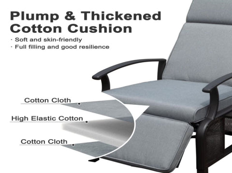 Unparalleled Comfort and Elegance: Our exquisite reclining patio chair, meticulously crafted for unrivaled comfort and enduring elegance. From its luxurious design to robust construction, it embodies the epitome of refinement and indulgence. Weight capacity up to 350lbs.