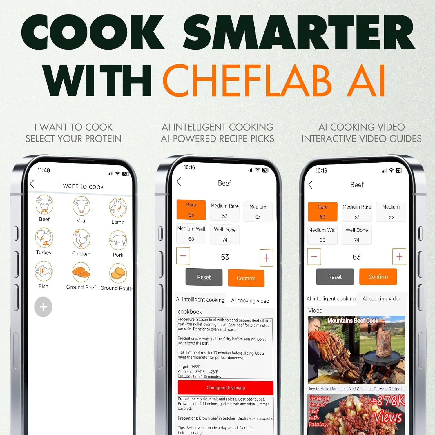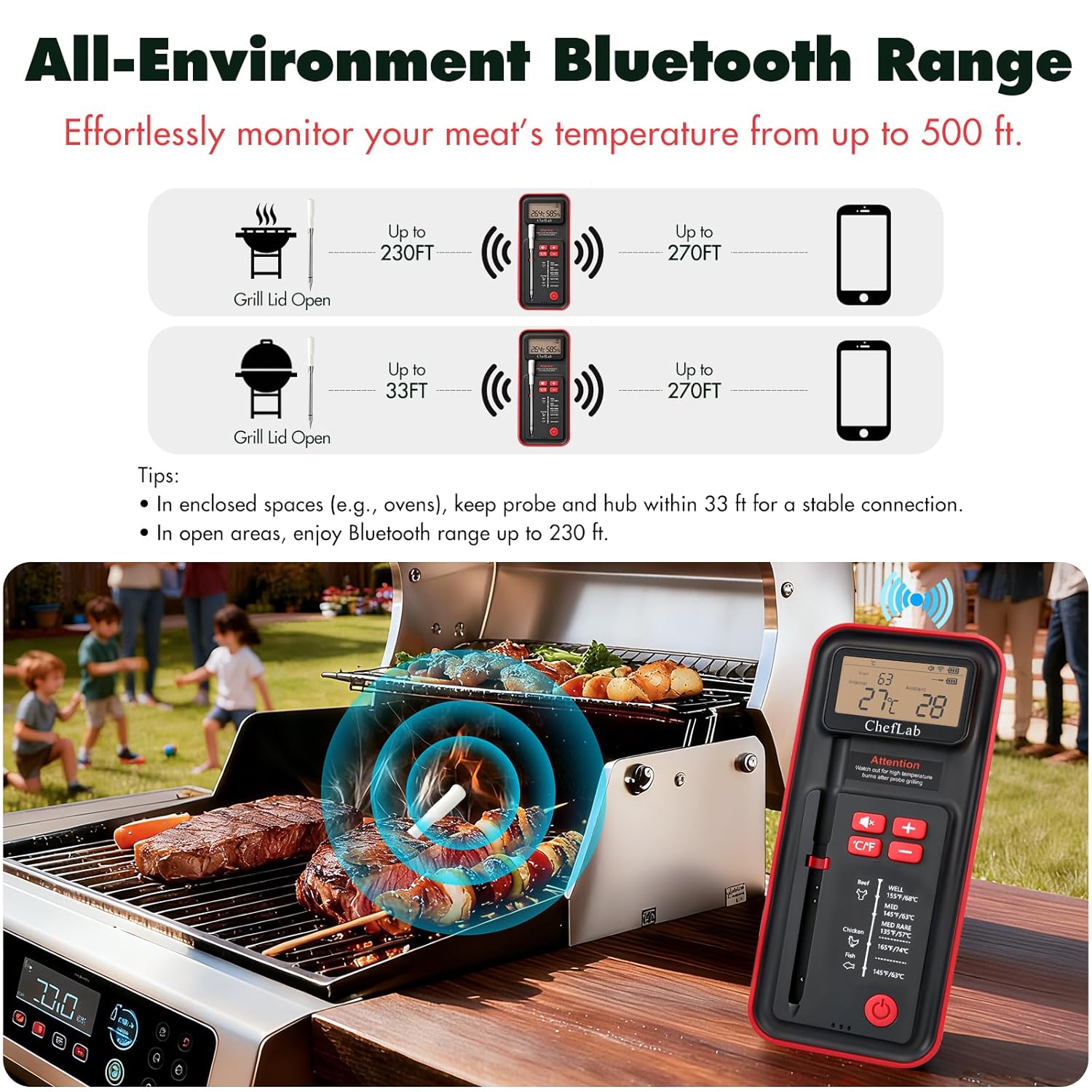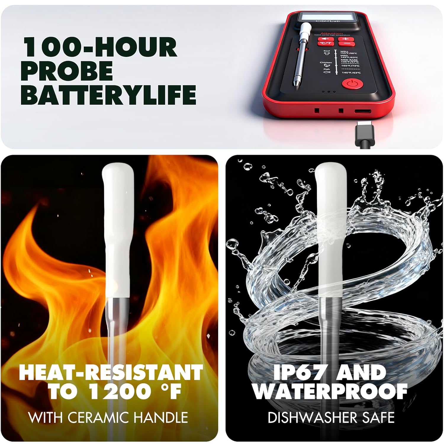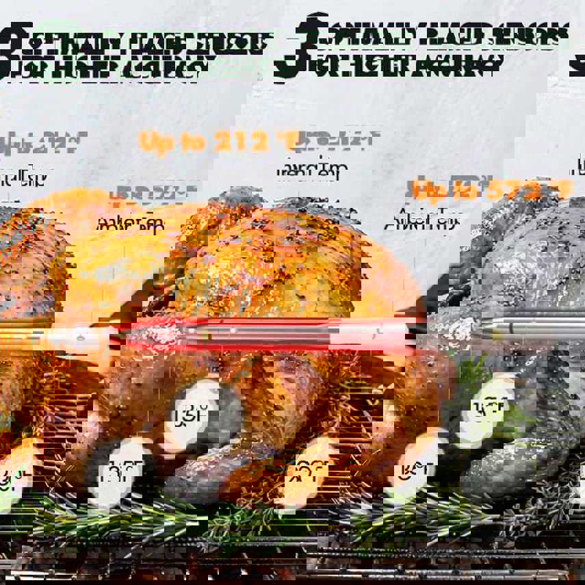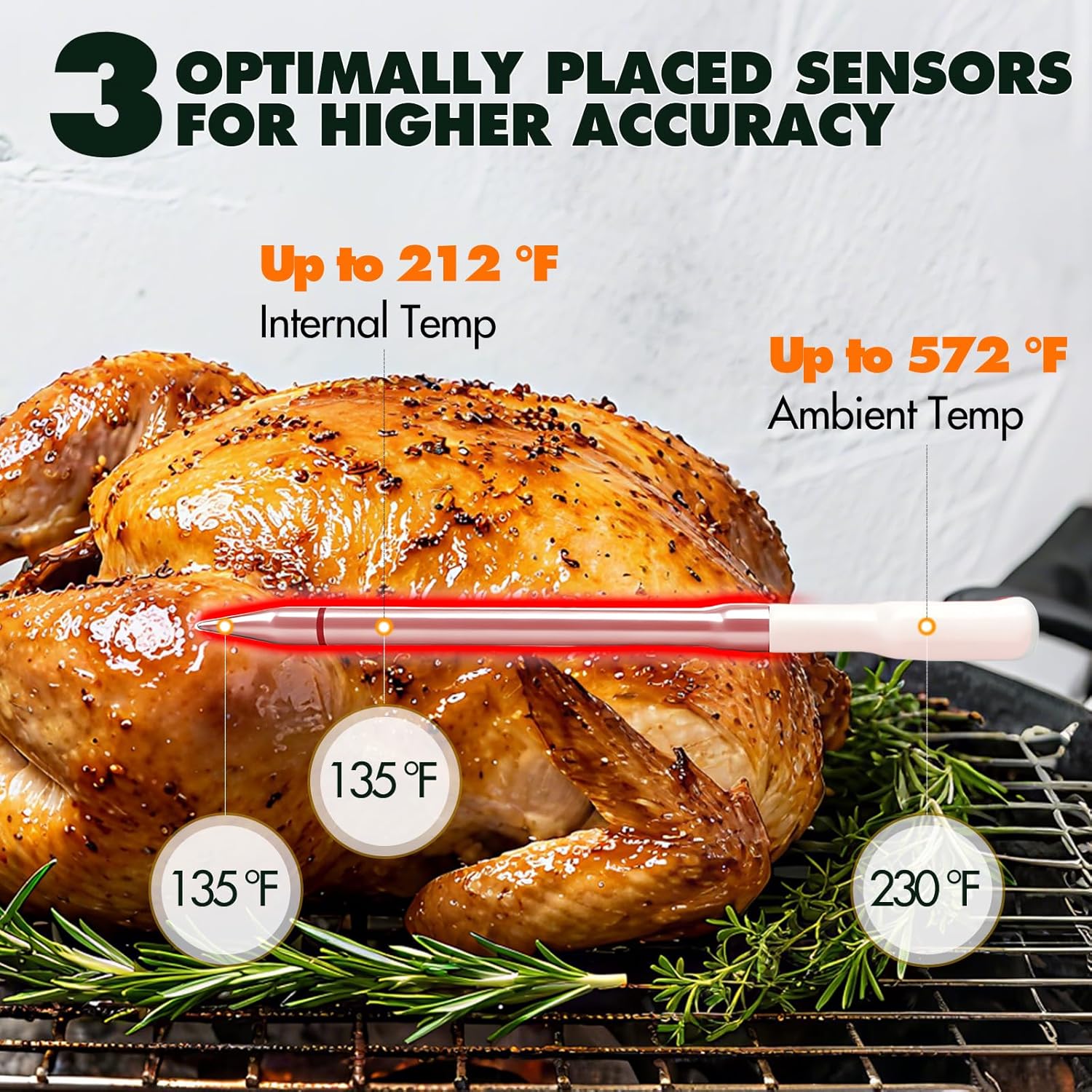 AI Meat Thermometer, 500 ft Long Range Bluetooth Grill Thermometer for Smoker, Oven, BBQ, 94557200