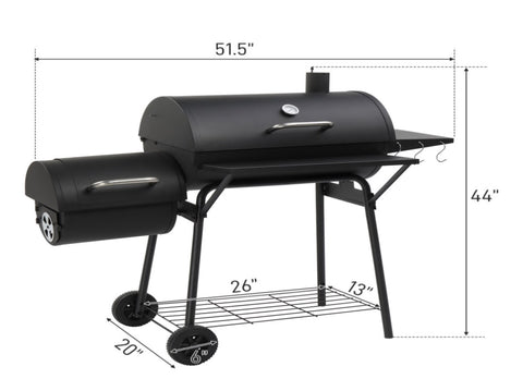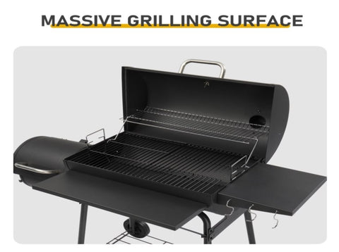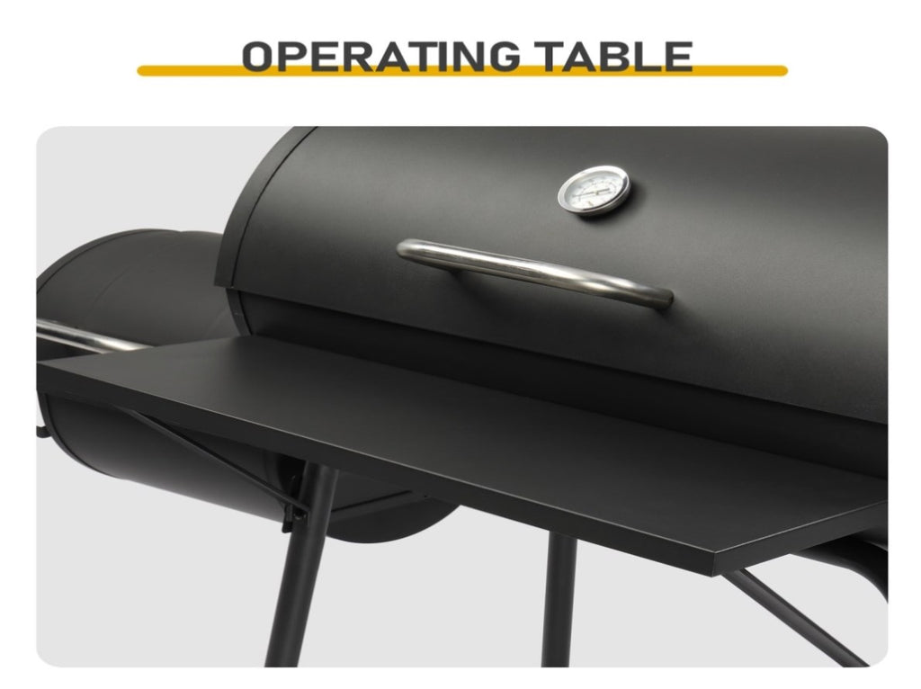 Take your backyard BBQs to the next level with this barrel charcoal grill featuring an integrated offset smoker and warming rack. Designed for smoky flavor and precise heat control, this outdoor grill offers a versatile cooking experience perfect for grilling, smoking, and searing. With its spacious grilling surface, durable steel construction, and smart features like an adjustable charcoal pan and built-in thermometer, this grill is ideal for patio parties, family gatherings, or weekend cookouts.