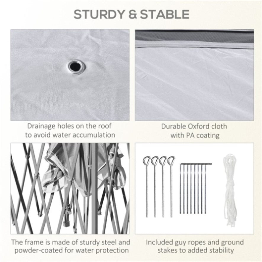 - Pop-up folding steel frame for swift set up and easy tear down