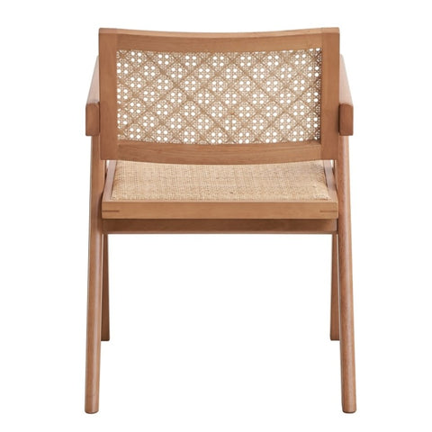 Transform your dining area with these effortlessly stylish armchairs. Their airy, patterned rattan inserts and gently curved backrests create a relaxed yet sophisticated ambiance. Perfect for intimate gatherings or larger celebrations, these compact chairs add a touch of mid-century modern charm and relaxed elegance to your home.