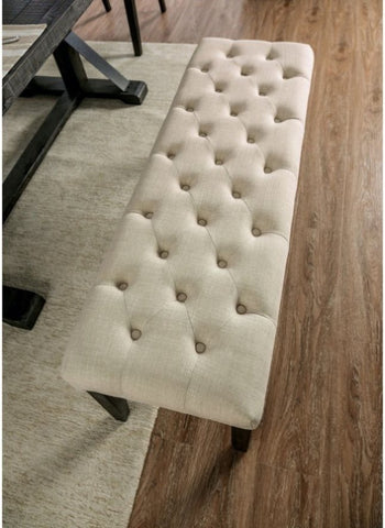 Classic Ivory 1PC BENCH Button Tufted Linen Like Fabric Solid wood Chair Upholstered Seat Breakfast B011104803