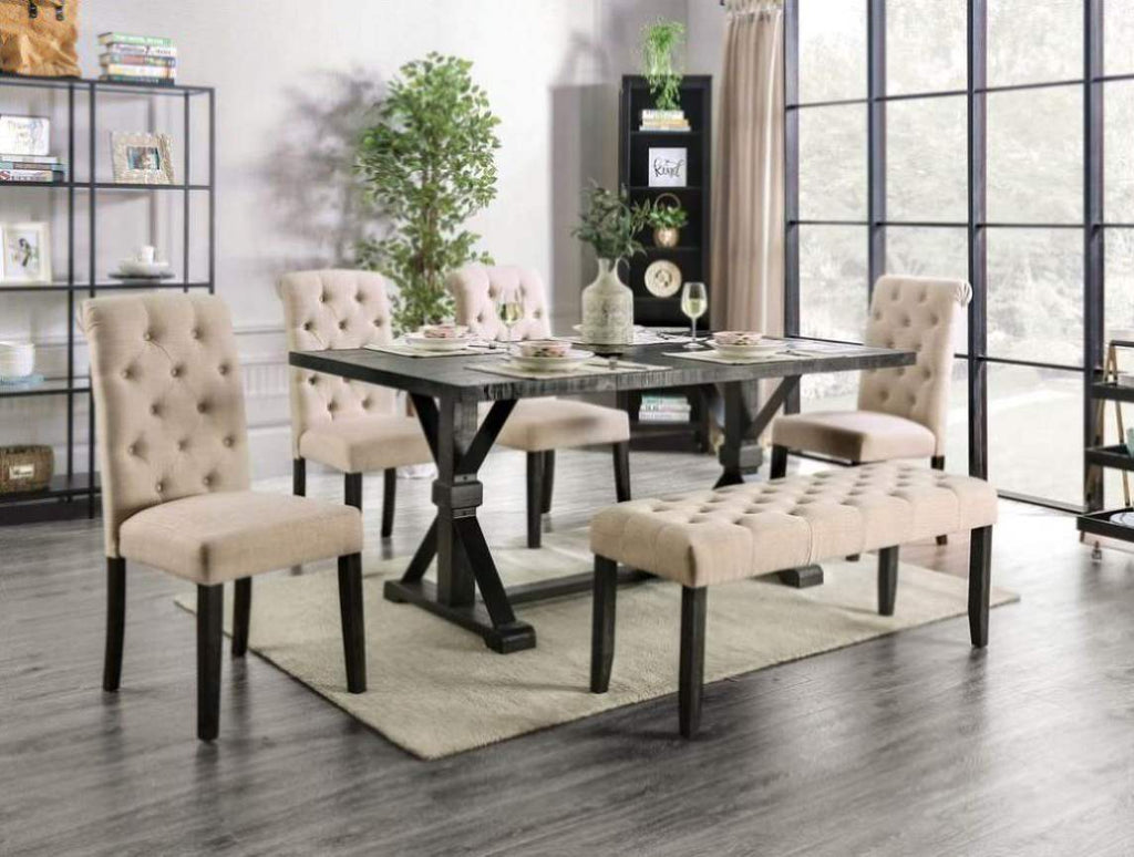 This exquisite dining bench will be the talk of your next home-cooked meal, party, or small gathering with friends. With a padded and button-tufted seat, it will give your dining room that rustic aesthetic that will accentuate any color scheme.