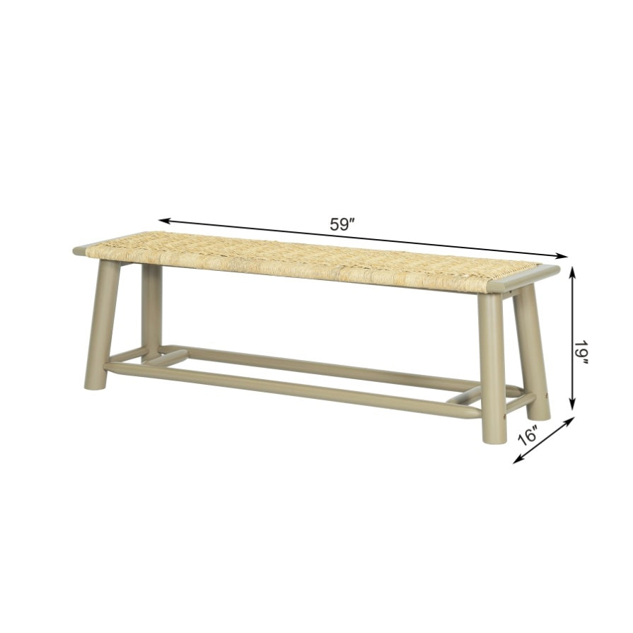 Farmhouse Modern Solid Wood Rattan Bench - 59 Inch Indoor & Covered Outdoor Bench Champagne Finish N842P271335E