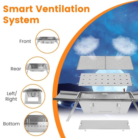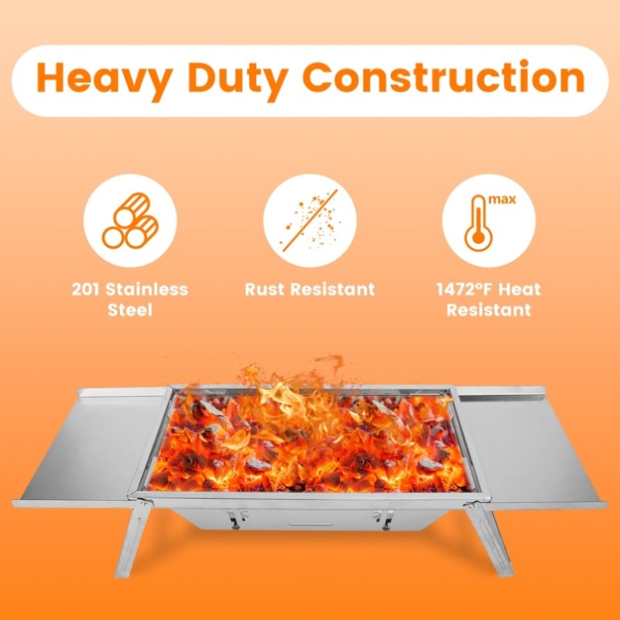 - Super Heavy Duty & Heat Resistant Grill: Constructed from heavy duty 201 stainless steel, this foldaway charcoal grill grill stands up to 1472°F (800°C) , rust-resistant and built for long-lasting use.