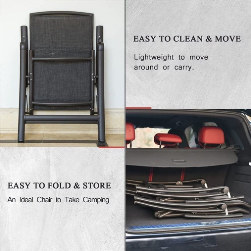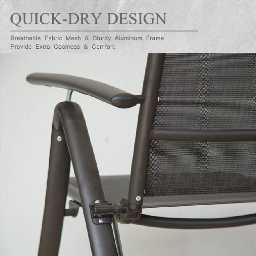 [ADDITIONAL COMFORT]: The seat is made of breathable textilene fabric mesh, which not only provides extra coolness and comfort for cozy sitting experience but also extends the time of use. Additional comfort than a standard folding chair.