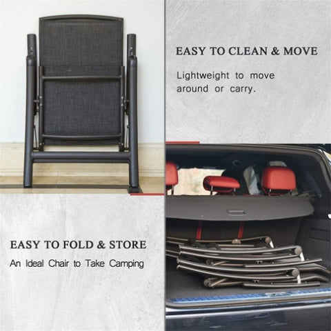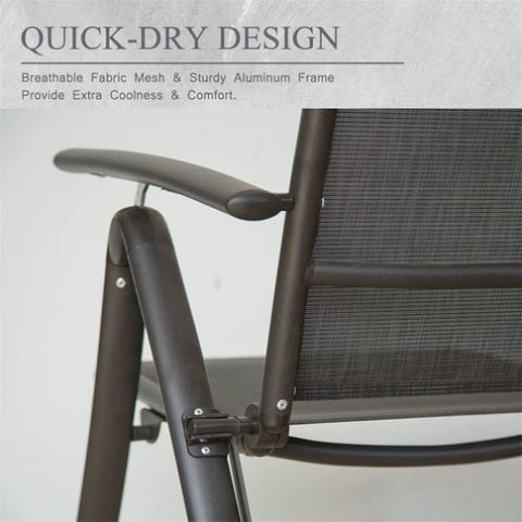 Folding Patio Chairs Set of 2, Aluminium Frame Reclining Sling Lawn Chairs with Adjustable High W1859109923