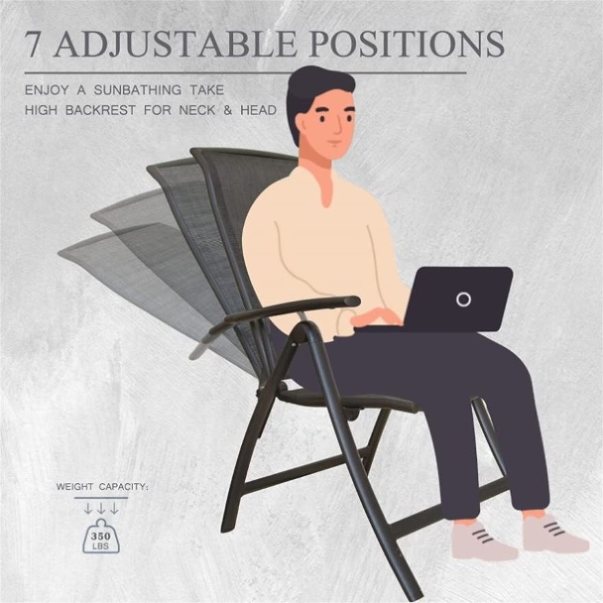 [7 ADJUSTABLE POSITIONS]: There are 7 adjustable positions of backrest to meet your different needs. The folding chair LENGTHENS BACKREST UP TO 44.5’’ that can go past your head comfortably.