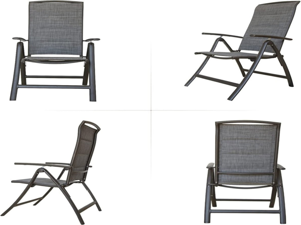 [STURDY ALUMINUM FRAME]: This lawn chair’s premium solid aluminum frame in triangular structure can hold up to 350 lbs. Non-slip foot pads improve overall stability anti-slide, and the chair is remarkably sturdy. Upholstered seats and ALUMINUM STREAMLINED ARMREST that ensures ultra comfort.