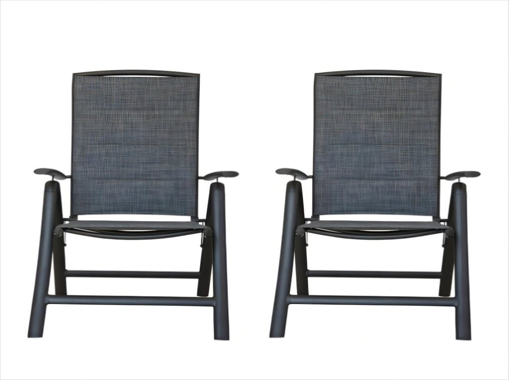Folding Patio Chairs Set of 2, Aluminium Frame Reclining Sling Lawn Chairs with Adjustable High W1859109925