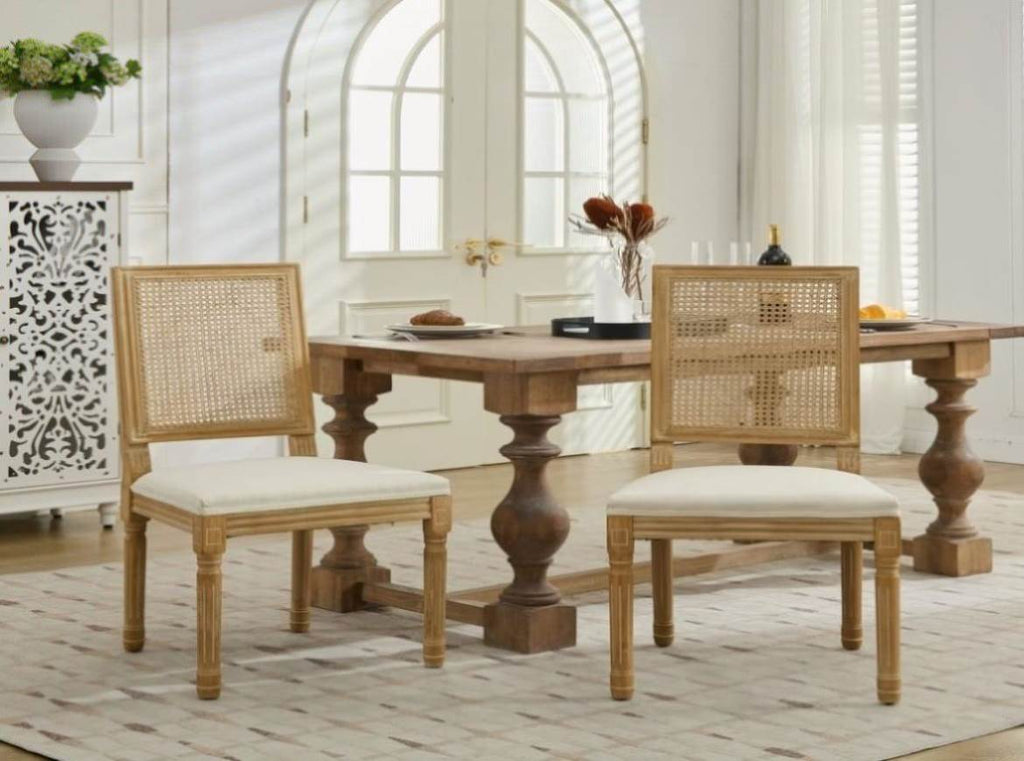 French Decor Chairs Set of 2, Louis Dining Chairs with Square Rattan Backrest and Exquisitely Carved W1143P335056